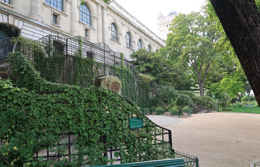 A green haven nestled against the historic wall of the former École Polytechnique.