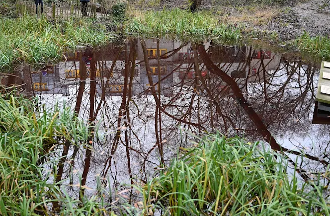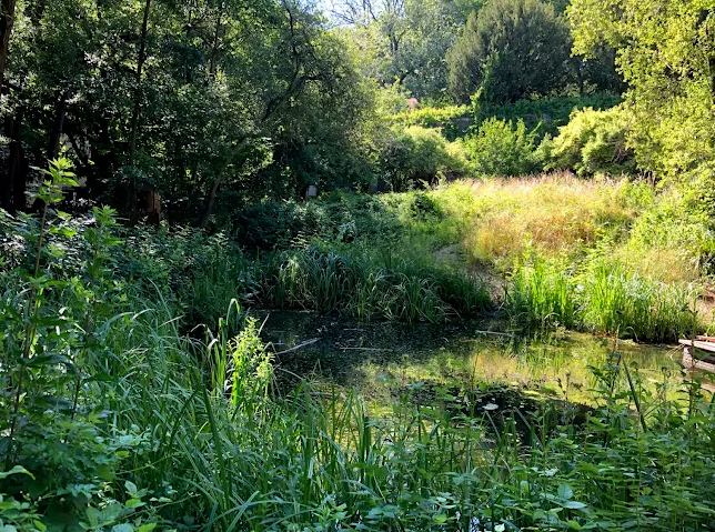 Below lies a shaded understory where ferns, bellflowers, geraniums (herbe‑à‑Robert), and the toxic hellebore fétide (once called “herb of disgust”) flourish. Finally, the educational pond at the bottom is a thriving micro‑ecosystem: frogs, newts, red dragonflies, water spiders (gerris), and aquatic mint coexist here.