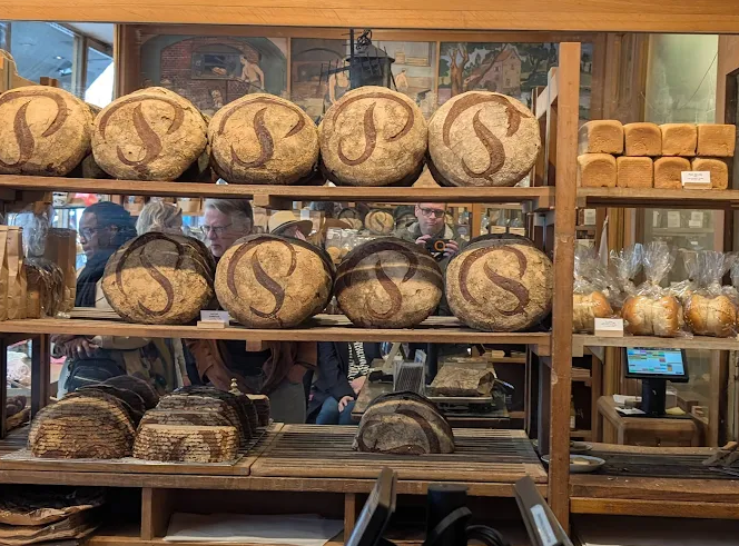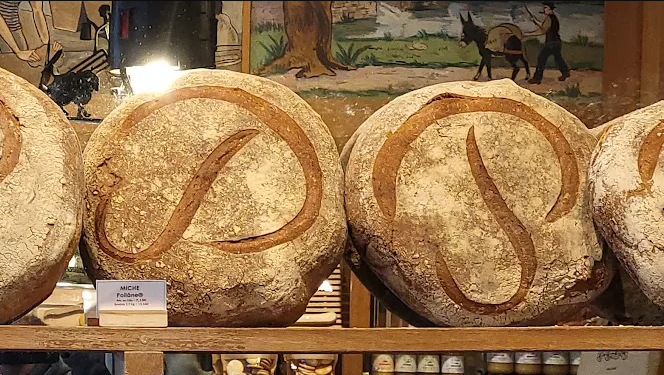 Founded in 1932 by Pierre Poilâne in the bohemian quarter of Saint‑Germain‑des‑Prés, Boulangerie Poilâne has become a Parisian institution of artisanal sourdough baking. From the start, Pierre exchanged bread for art, and some paintings still adorn the shop walls around a chandelier made of bread. The signature miche is hand‑shaped using stone‑ground wheat flour, natural sourdough, Guérande sea salt, and baked in a traditional wood‑fired oven.