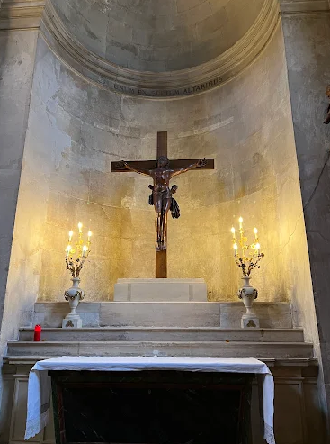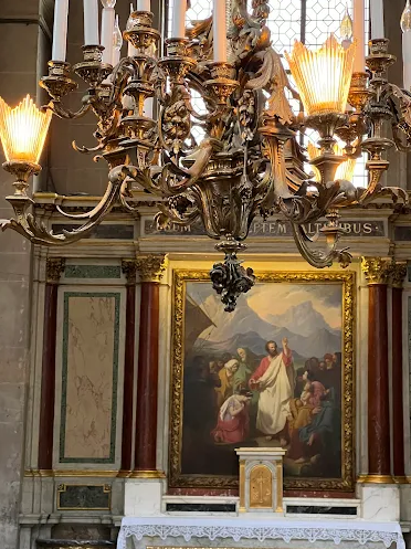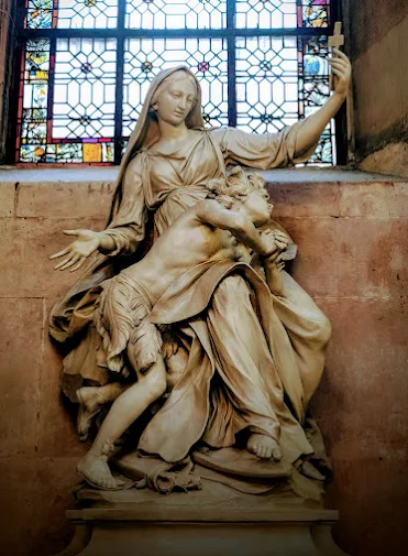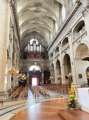 Inside, a spacious, sunlit nave is flanked by chapels housing artistic treasures: Germain Pilon’s Vierge de douleur (1586), Delacroix’s Christ in Agony (1827), as well as impressive statues of the Sacred Heart and Virgin and Child. The grand pipe organ (three manuals, 56 stops) and choir organ add musical richness.