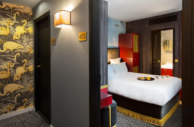 Guests are mainly couples and style-conscious urban travellers who appreciate proximity to cultural highlights such as the Louvre and Notre‑Dame, and the district’s buzz. Visitors praise the personalised service, cleanliness, and intimate atmosphere – though rooms are described as stylishly compact . Legend has it that a touch of Boris Vian’s “snob spirit” lingers here, at the meeting point of bourgeois refinement and irreverent chic.