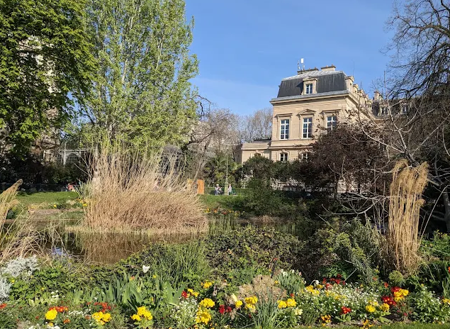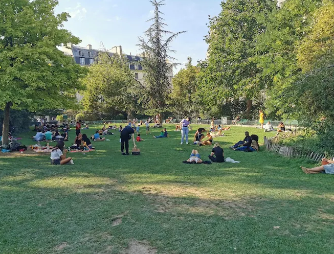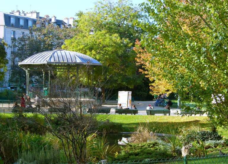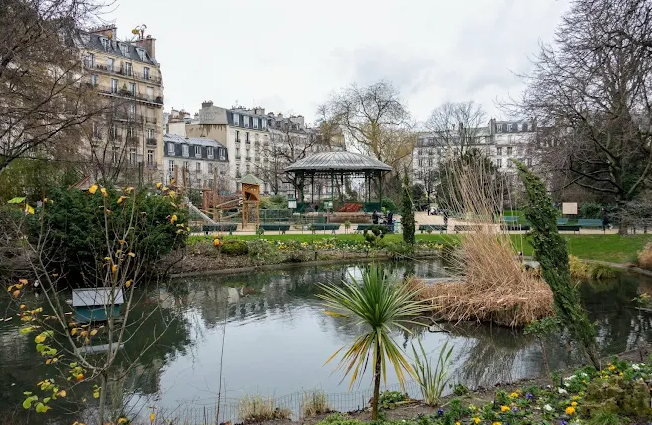 Today, this square is an urban oasis: ponds with waterfalls made of Fontainebleau rocks, a 1900 music kiosk, children’s play areas, table‑tennis and petanque benches — ideal for leisure and relaxation . Open daily and free of charge, it operates from 8 am to 9:30 pm in May–August (other months vary).