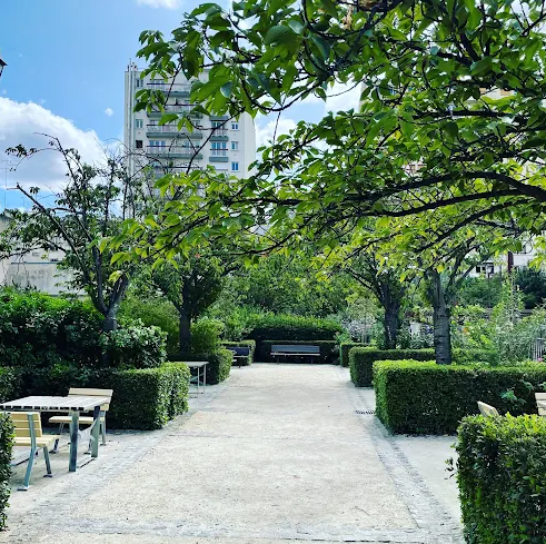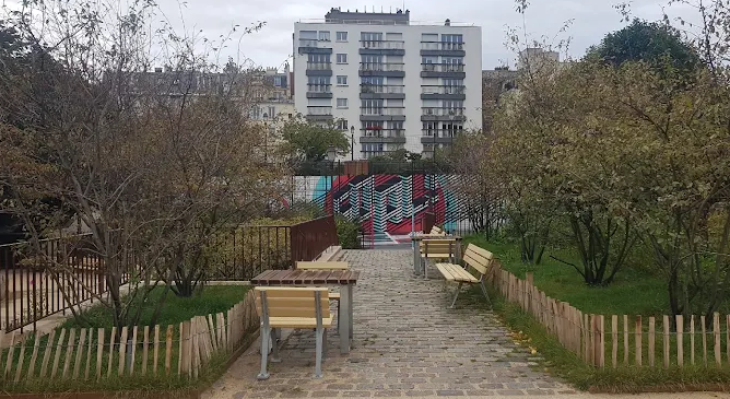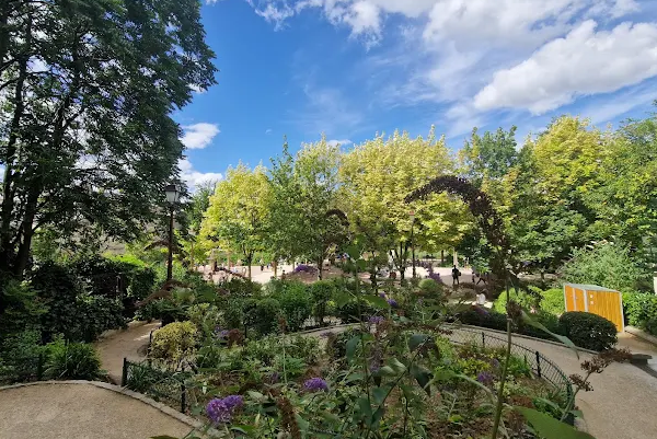 Practical info: accessible by metro line 12 (Lamarck‑Caulaincourt or Jules Joffrin), main entrance at 25 rue des Cloys, secondary access via rue Marcadet or rue Achille‑Martinet. The garden holds the EcoJardin label; note no Wi‑Fi, no changing table or vending drinks, and pets are not permitted. It’s open daily season‑dependently: summer from 8 a.m. (9 a.m. weekends) to 9:30 p.m.; autumn until 7:30 p.m.; winter until 7 p.m. or 5:45 p.m., depending on the schedule.