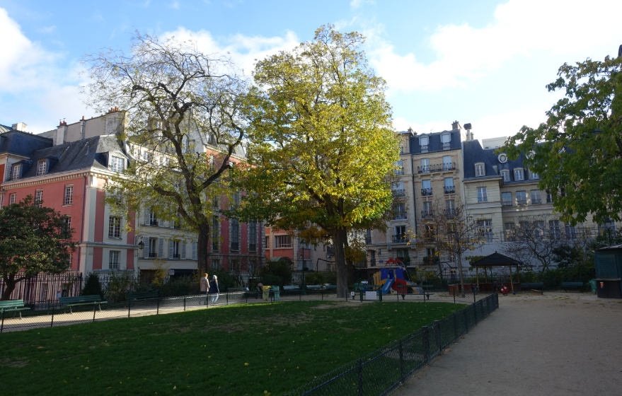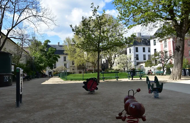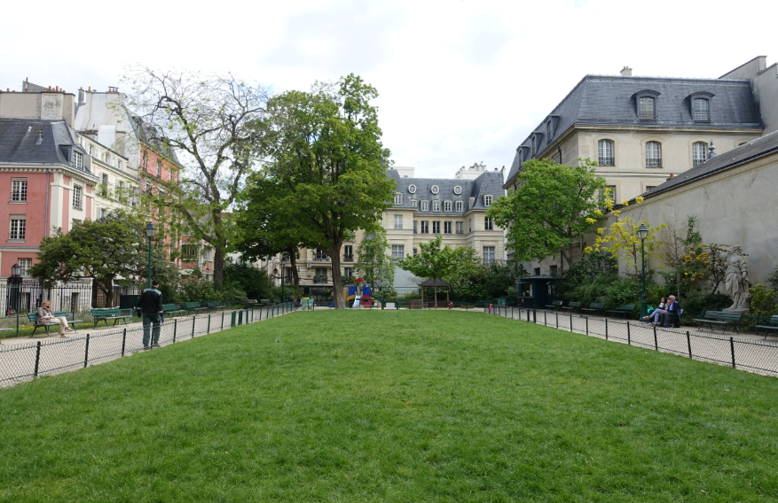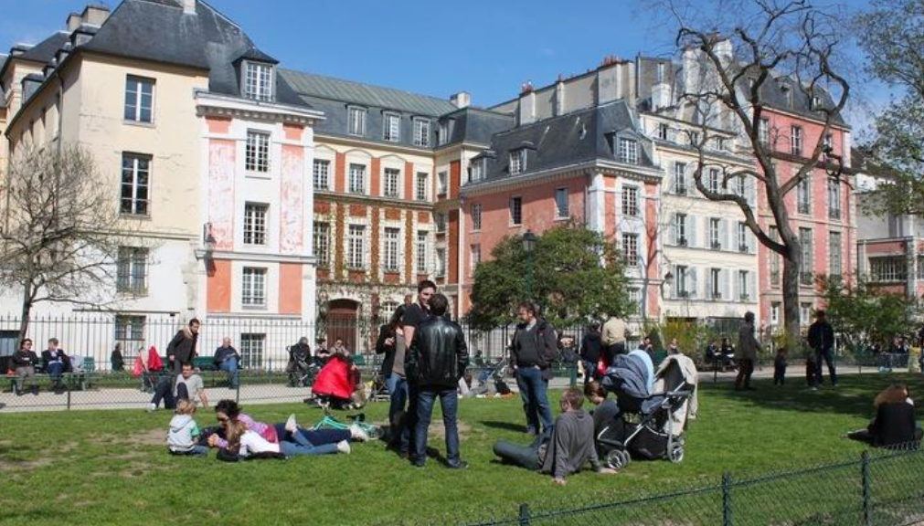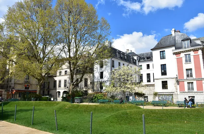A green, historic oasis in the Marais, perfect for families and those seeking peace.