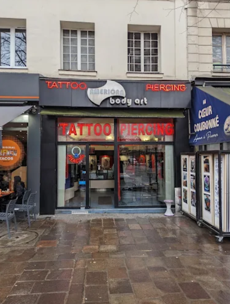 Located in the heart of Paris (1st arrondissement), just steps from Châtelet‑Les Halles, American Body Art is a renowned tattoo and piercing studio with a 4.7★ reputation from over 2,100 reviews. Its flagship shop at 7 Rue des Innocents offers a wide range of services: realistic tattoos, traditional, mandala, geometry, dotwork, watercolor, cover‑ups, custom lettering, as well as many types of piercings (nose, septum, tongue, industrial, flat, micro‑dermal, genital, etc.) with transparent prices (25 €–100 € depending on the piercing type).