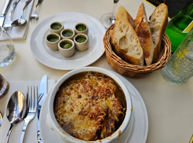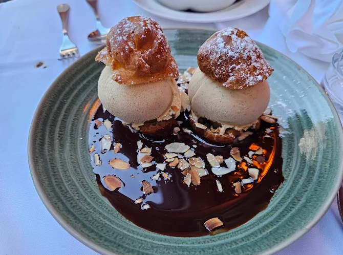 Lunch formulas offer value : starter/main or main/dessert for €25, full menu for €30 (excluding drinks). Desserts feature classics such as crème brûlée, Paris‑Brest, and Berthillon profiteroles (€12–14) .