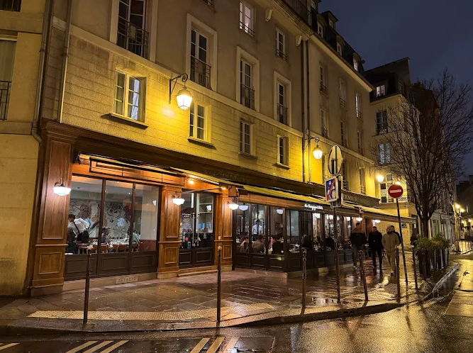 Since 2006, Au Bourguignon du Marais at 52 Rue François Miron offers a culinary journey through Burgundy, just steps from Île Saint‑Louis and Hôtel de Ville. Its décor blends classic mouldings, wood panelling and wicker chairs, creating a cozy, light-filled setting, especially charming on its street-facing terrace.