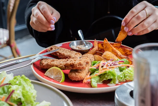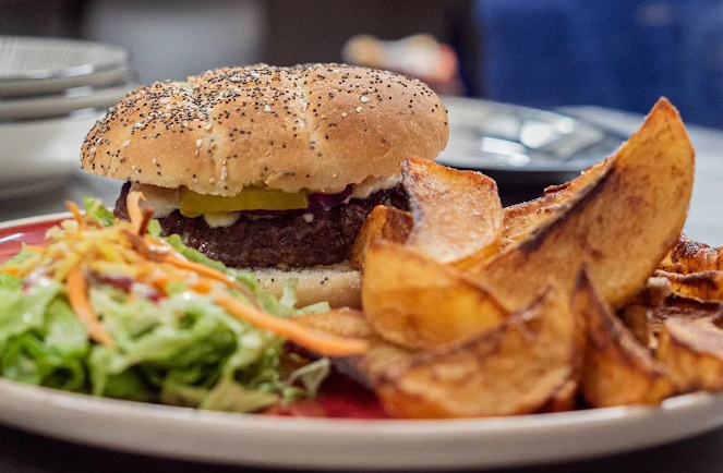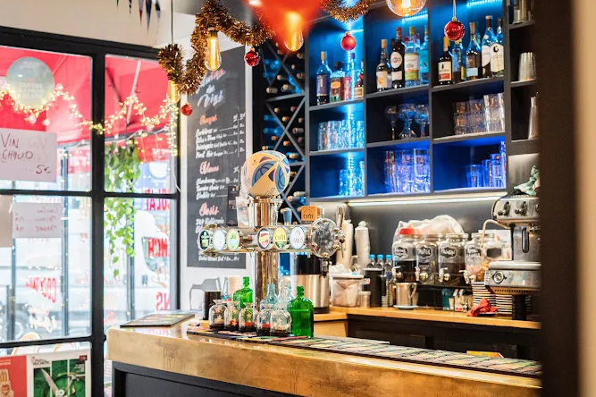 The décor is classic and comfortable: leather seating, wall art, and a spacious covered terrace perfect for sunny days . Indoors is air-conditioned with free wifi. The venue accommodates up to 85 guests on the terrace and around 20 for private bookings, ideal for afterworks, birthdays, sports screenings or professional events .