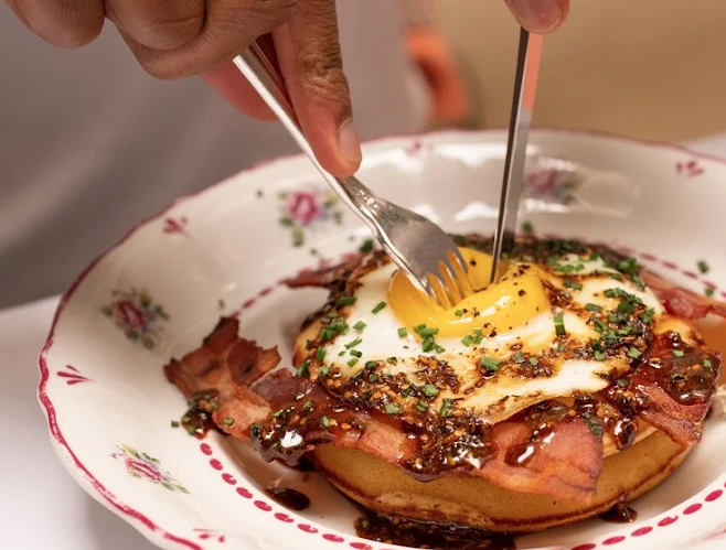 Fun fact: the challah is unmolded table-side in floral porcelain, with servers dressed traditionally to evoke the warmth of grandma’s kitchen .