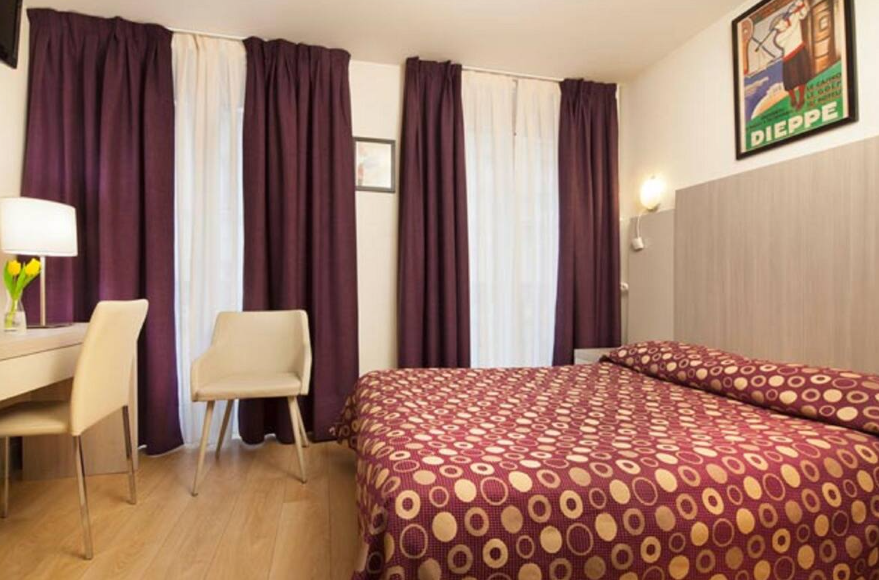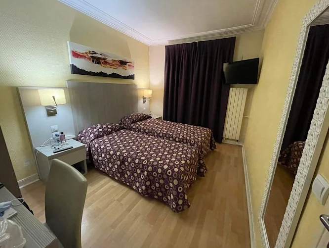 Rooms range from basic classics (11 m²) to superior triples. They are simple but comfortable, all equipped with free Wi‑Fi, TV, air conditioning, private bathrooms with showers, hairdryers, and some with charming Parisian balconies . A continental breakfast is served daily from 7–10 AM, either in the dining room or in the privacy of your room .