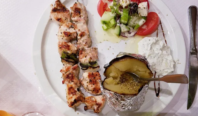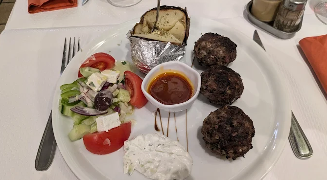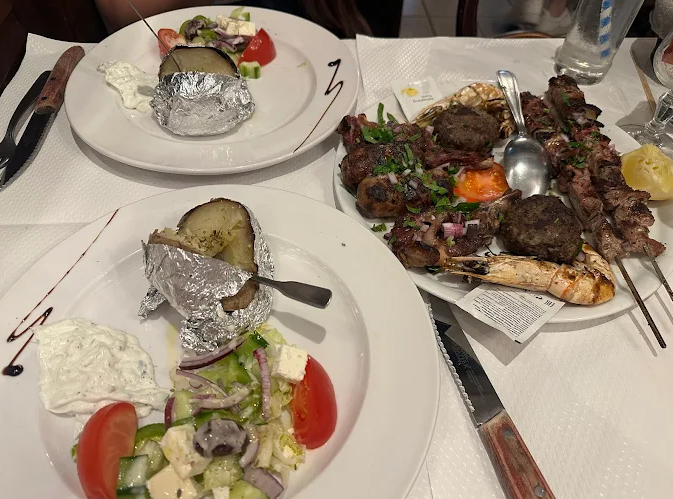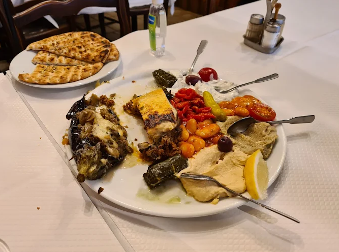 What you can do there: Enjoy a range of meze (eggplant caviar, tzatziki, honey saganaki), classic mains (moussaka, souvlaki, keftedes), and fresh fish dishes (whole sea bream, grilled salmon). The €20 starter-main-dessert menu offers exceptional value . For dessert lovers, delicious desserts and complimentary digestifs (often raki) round off the meal .