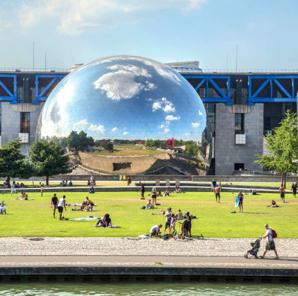 Open from 6 am to 1 am, the lawns and gardens are free to visit, while major attractions set their own ticket prices. These include: Cité des Sciences (Europe’s largest interactive science museum), La Géode (IMAX cinema), Cité de la Musique & Philharmonie (classical, jazz and world music concerts), Le Zénith, Cabaret Sauvage, Trabendo, Grande Halle. Regular features include workshops, open-air cinema, festivals (Jazz à la Villette, Villette Sonique) and seasonal events.