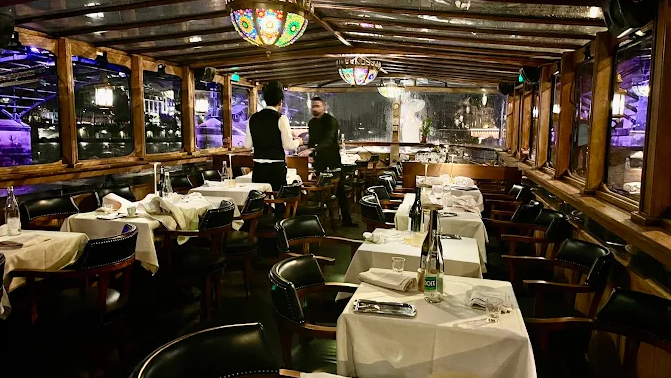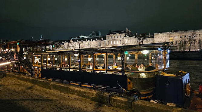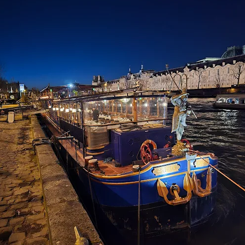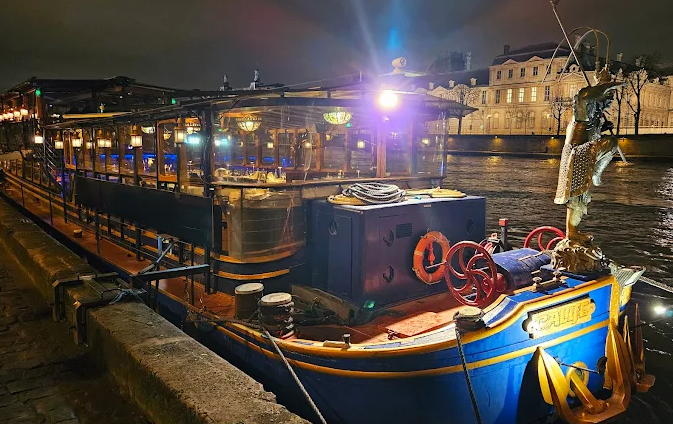 Cruising the Seine at sunset while savoring gourmet dishes is exactly what Le Calife promises. Docked at Port des Saints‑Pères, this historic floating restaurant, powered by a 1939 Kromhout engine, offers a captivating 2‑hour cruise. Prices range from €55 for weekend lunches (via TheFork) to €159 for the Royal dinner in terrace/veranda.