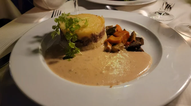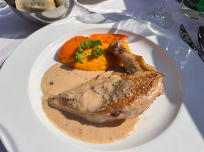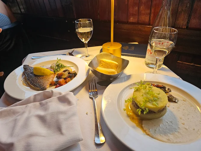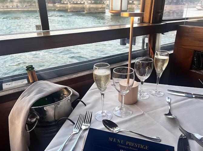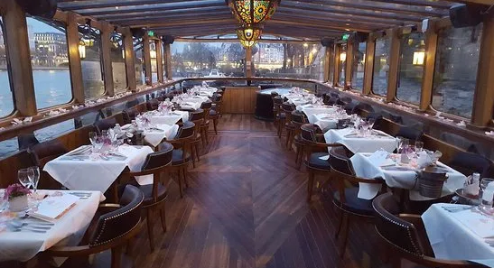 Onboard, you'll find four distinct settings: a covered terrace (unique in Paris), a panoramic-roofed veranda, an exotic wood lounge, and an intimate music salon hosting live concerts (pop, jazz, classical) from June to September. All dishes are prepared on the boat—from foie gras and grilled prawns to lamb shoulder and Rossini-style steak—with vegetarian options available .