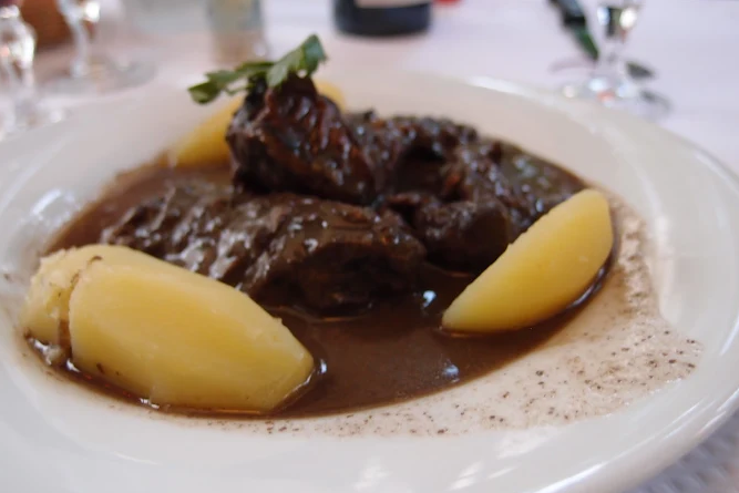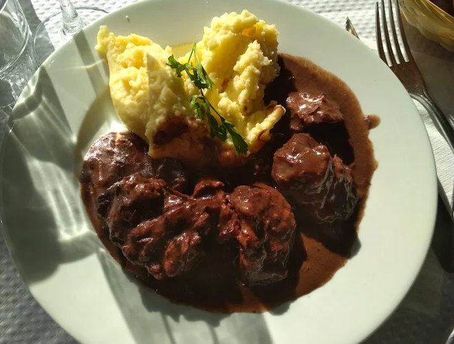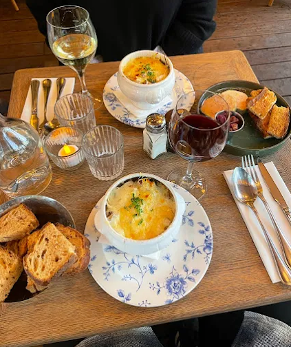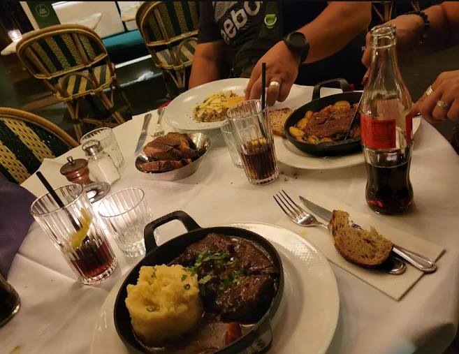 The menu celebrates French terroir, particularly specialties from Aveyron like Aubrac beef (steak, tartare, pot‑au‑feu), beef bourguignon, slow‑cooked lamb, blood sausage, porcini scrambled eggs, Romans ravioli, and duck with cherries. Seafood lovers will also enjoy oysters, frogs’ legs, and truffle pasta .