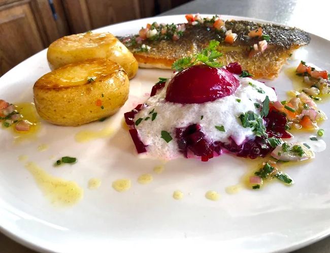 The cuisine is generous and refined, blending traditional French flavors with exotic twists. Highlights include crispy Morteau sausage with breaded mozzarella and tomato (around €8), “larded” scallop risotto, and Thai-style pike in papillote (around €21). A weekday lunch formula is €13.50, while the Sunday brunch is €22. À la carte dining typically costs €30, with a well‑chosen wine list at reasonable prices.