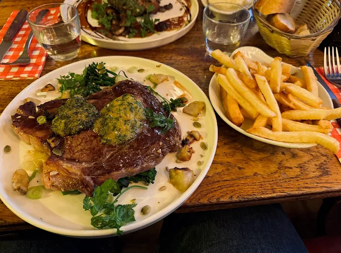 The atmosphere is lively and welcoming: you’re greeted with warmth, often accompanied by classic French songs from Gainsbourg or Montand . The place gets lively and loud, especially in the evenings and at weekends, with the terrace and bar open until 1 am . Staff are attentive, multilingual, and the service is described as warm, efficient and familial .