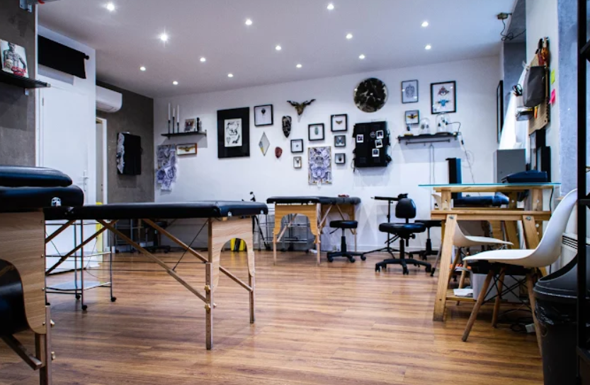 Founded by Mister Monster, famous for his mythological creature designs, the studio brings together around ten artists with diverse stylistic approaches: Amor Roso reinterprets classical art in fine-line style, Charlotte Adri explores a medieval-fantasy universe, Tofik specializes in luminous realism, Magicless Wizard merges realism and surrealism, Tatoomaas offers minimalist abstract lines, and Renard Noir creates poetic, instinctive pieces.